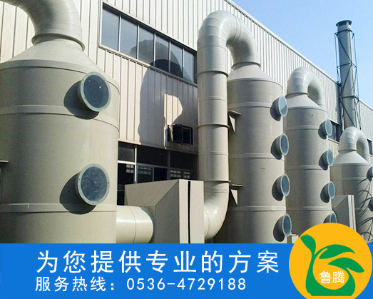 喷淋形势采用三层填料,三级喷淋使气液更充分接触,提高净化效率。本塔配用玻璃钢离心风机和防腐水泵即可。当处理风量在10000立方米以上时,采用两台水泵就能到达设计要求。